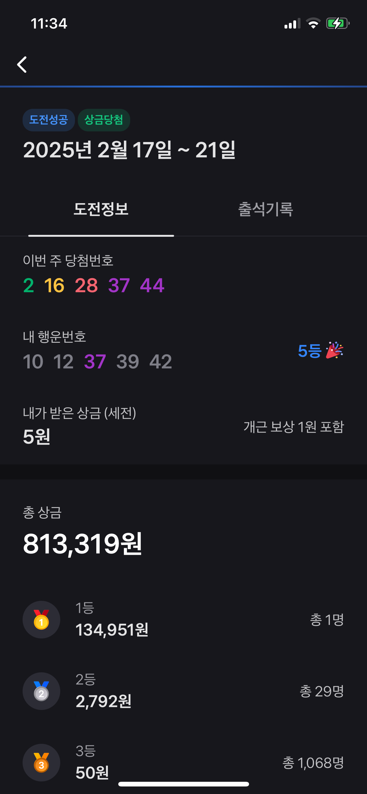 저도 3주전부터 꾸준히 참여해오고 있는데요! 5등 한번 당첨 밖에 되지 않았네요 ㅠㅠ 하지만, 이번주는 될 거라는 기대감과 함께 계속해서 참여하게 되는 것 같아요!