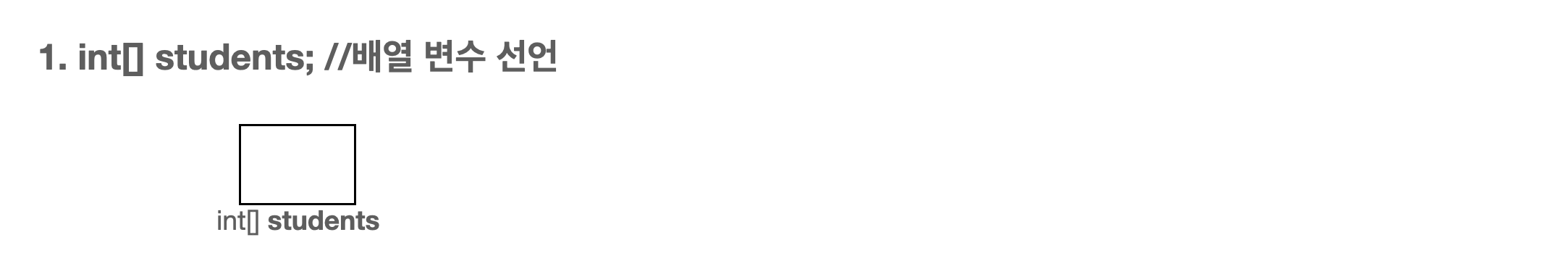 • 배열을 사용하려면 `int[] students;` 와 같이 배열 변수를 선언해야 한다.