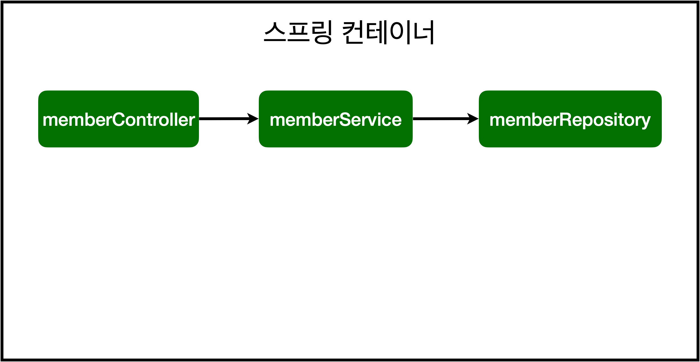 - `memberService` 와 `memberRepository` 가 스프링 컨테이너에 스프링 빈으로 등록되었다.